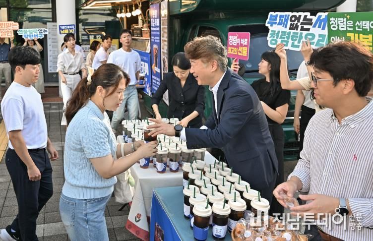 이날 캠페인에서는 서구청 정문 출입구에서 출근하는 직원들에게 청렴 명언이 담긴 포춘쿠키와 커피·에이드 등 음료를 함께 제공해 청렴 메시지를 전했다.