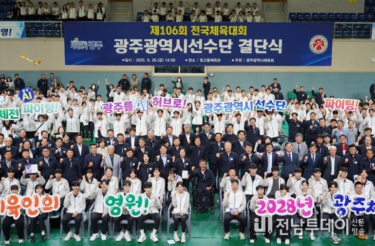 전남투데이 정홍균 기자 | 광주광역시체육회(회장 전갑수)가 26일 오후 2시 빛고을체육관에서 ‘제106회 전국체육대회 광주선수단 결단식’을 열어 대회 필승을 위한 각오를 다졌다고 밝혔다.