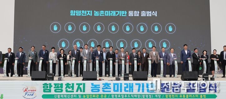 출범식은 생산부터 유통까지 아우르는 함평군 농업의 미래 성장 기반을 선포하는 자리로, 신활력혁신센터 및 농업인회관 준공식과 함평로컬푸드직매장(함평점) 개장식, 함평천지 유통클러스터 출범식을 통합해 진행됐다.