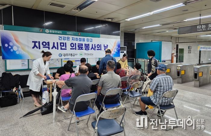 전남투데이 정홍균 기자 | 광주교통공사는 최근 광주시 서구 양동시장역에서 광주기독간호대학교와 함께 지역민을 위한 의료봉사 활동을 펼쳤다.