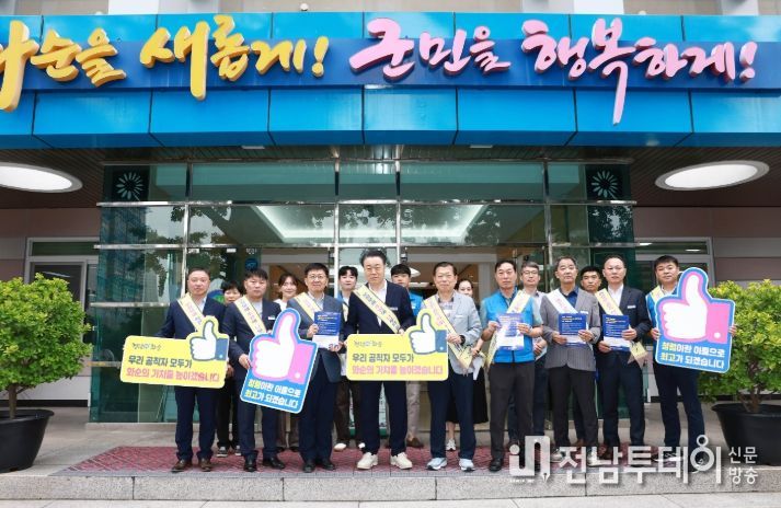 전남투데이 강영선 기자 | 화순군은 29일 화순군공무원노동조합(위원장 권창봉)과 합동으로 주요 부패 취약 시기인 추석 명절을 앞두고 ‘공직자 청렴 캠페인’을 펼쳤다고 밝혔다.