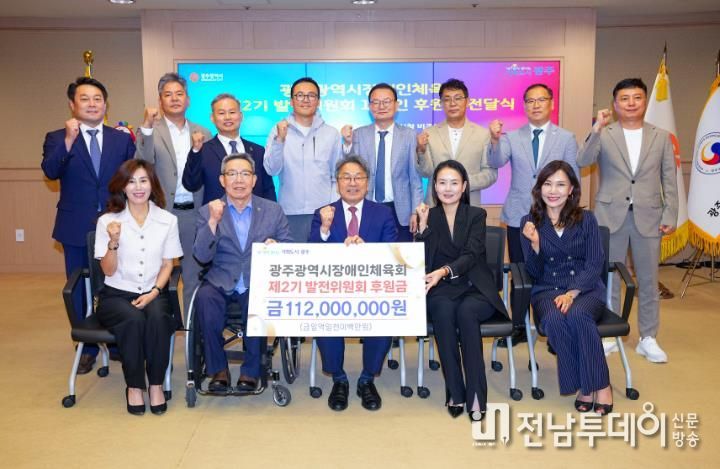 광주시장애인체육회 제2기 발전위원회는 장애인체육의 경쟁력 강화를 위해 구성된 민간 후원 조직으로, 지역 기업과 일반 후원인 100명이 자발적으로 100만원씩 후원금을 모아 총 1억1200만원을 조성, 이날 후원금을 전달했다.