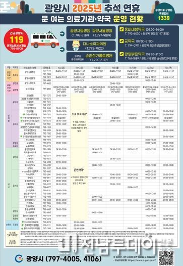 전남투데이 조평훈 기자 | 광양시는 시민과 귀성객들이 안전하고 편안하게 명절을 보낼 수 있도록 오는 10월 3일부터 9일까지 7일간 ‘추석 연휴 종합상황실’을 운영한다고 밝혔다.