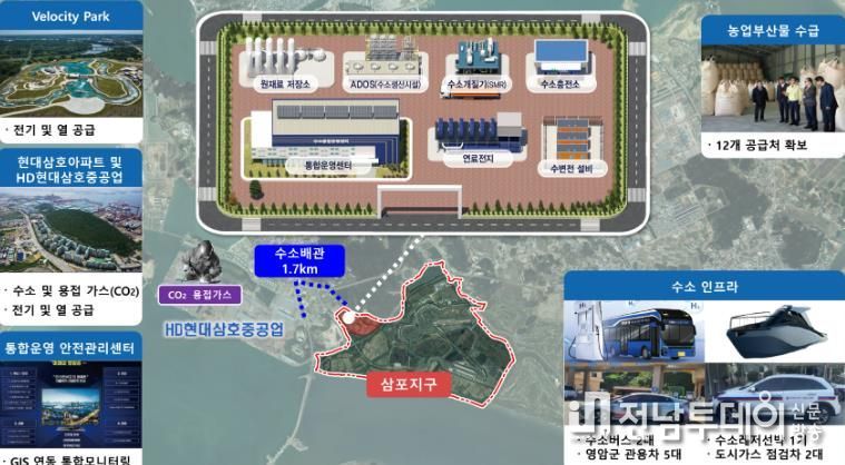 주요 사업으로는 왕겨·볏짚 등 농업부산물을 활용해 연간 730톤의 청정수소를 생산하고, 1.7km 수소 배관을 구축하며 인근 아파트와 삼포지구 숙박시설에 연료전지 발전설비를 설치한다.