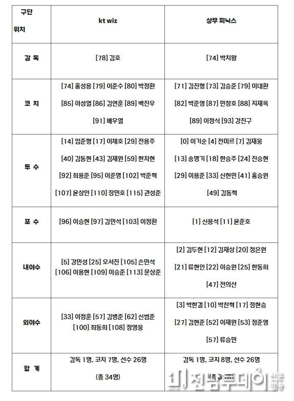 전남투데이 박세훈 기자 | 10월 1일(수) 오후 7시 고척스카이돔에서 개최되는 2025 KBO 퓨처스리그 챔피언결정전에서 맞붙는 KT와 상무의 출장자 명단이 발표됐다.