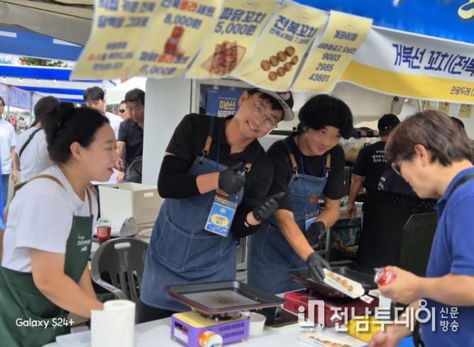 ‘수군 식량 창고’ 점포에서는 전복튀김, 대파 닭꼬치, 조도황금땅콩 아이스크림, 진도바나나잎으로 만든 울돌목 전투밥, 울금 저당 젤리 등 진도의 농수산물로 만든 먹거리가 관광객의 입맛을 사로잡았는데, “음식에도 이야기가 담겨 있어 더 특별하다”라는 방문객의 말처럼, 단순한 간식이 아닌 ‘역사를 품은 진도 한입’이었다.