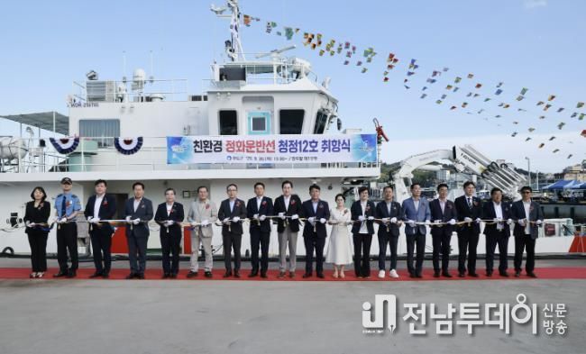 전남투데이 김용희 기자 | 완도군은 지난 9월 30일 해양쓰레기 수거, 적조 및 해양 오염 방제 등 해양 환경 보전을 위한 다목적 친환경 정화 운반선 ‘청정 12호’ 취항식을 가졌다.