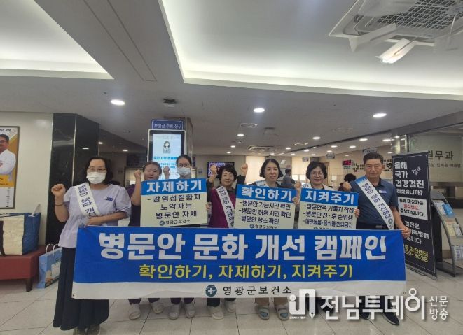 특히 이날 캠페인에는 영광군 보건소를 비롯해 영광종합병원, 영광기독병원 의료진들과 관계자들이 참여해 병문안 수칙이 담긴 리플릿과 포스터를 부착하고 올바른 병문안 문화를 위한 군민의 관심과 실천을 강조했다.