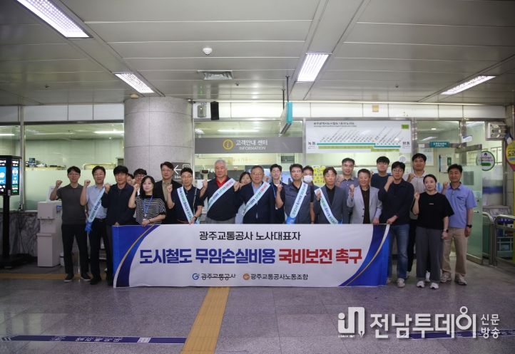 전남투데이 정홍균 기자 | 광주교통공사 노사는 1일 서구 상무역에서 시민들을 대상으로 ‘도시철도 무임 손실 국비 보전 홍보 캠페인’을 펼치고, 무임 승차 적자 문제에 대한 정부 차원의 지원을 촉구하고 나섰다.