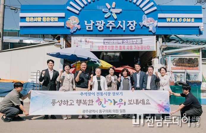 전남투데이 정홍균 기자 | 광주광역시 동구의회는 10월 1일 추석을 앞두고 지역 경제 활성화를 위해 대인시장, 남광주시장, 산수시장에서 동구랑페이를 활용해 ‘전통시장 장보기 행사’를 진행했다. 이번 행사는 고물가와 소비 위축으로 어려움을 겪는 전통시장의 활력 회복을 돕고, 현장 중심의 소통을 강화하기 위해 마련됐다.