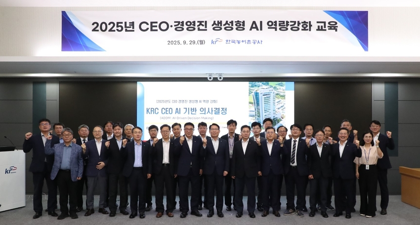 전남투데이 정홍균 기자 | 한국농어촌공사(사장 김인중)은 전사적 인공지능 역량 강화를 위해 ‘인공지능 활용 교육’에 집중하고 있다고 2일 밝혔다. 지난 29일에는 전남 나주에 위치한 본사에서 경영진과 부서장을 대상으로 인공지능(AI) 실행력을 갖춘 리더 양성을 위한 ‘생성형 인공지능 역량 강화 교육’을 운영했다.