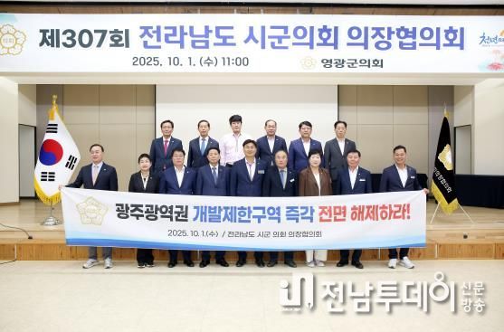 전남투데이 이현승 기자 | 전라남도 시군 의회 의장협의회는 지난 10월 1일 영광군의회에서 개최된 제307회 정례회의에서“광주광역권 개발제한구역 전면 해제 촉구 건의안”을 만장일치로 채택했다.