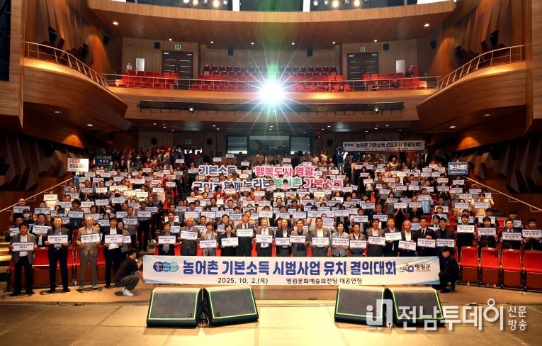 전남투데이 박세훈 기자 | 영광군은 지난 10월 2일 오후 2시, 영광문화예술의전당 대공연장에서 '농어촌기본소득 시범사업 유치 결의대회'를 성황리에 개최했다.