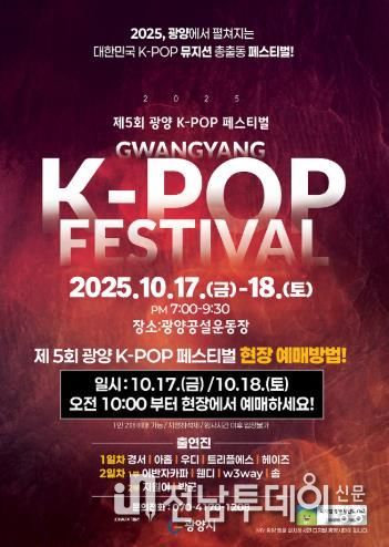 이현주 광양시 관광과장은 “기존의 탄탄한 최정상급 라인업에 신예 아티스트가 합류하면서 라인업이 더욱 풍성해졌다”며 “강렬한 퍼포먼스와 비주얼, 독창적인 음악 스타일로 특별한 감동을 선사할 제5회 광양 K-POP 페스티벌에 많은 관심과 성원을 바란다”고 말했다.