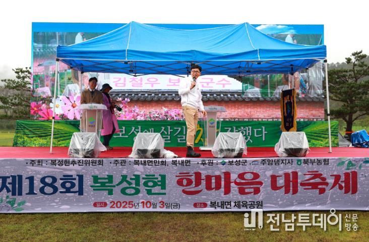 전남투데이 조평훈 기자 | 보성군은 지난 3일 복내면 체육공원에서 열린 ‘제18회 복성현 한마음대축제’가 지역민과 출향 향우, 관광객 등 1,000여 명이 참여한 가운데 성황리에 마무리됐다고 밝혔다.