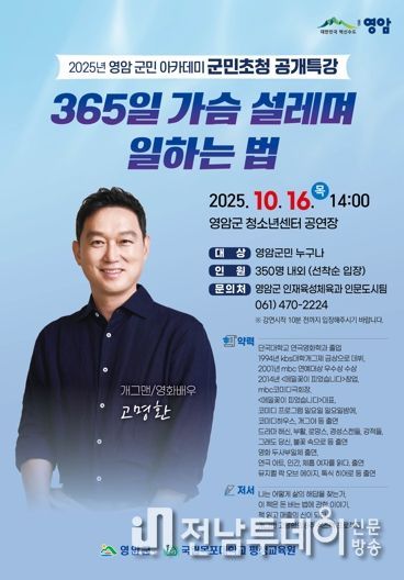 전남투데이 박상훈 기자 | 영암군이 10월16일 오후 2시 청소년센터에 개그맨이자 방송인인 고명환 씨를 초청해 군민아카데미 제5회 공개특강을 개최한다.