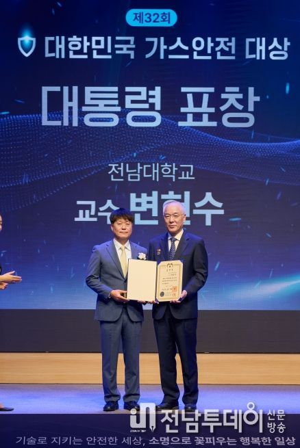 전남투데이 손영욱 기자 | 전남대학교 화공생명공학과 변헌수 교수가 산업통상자원부에서 주최하고 한국가스안전공사(사장 박경국)가 주관한 ‘제32회 대한민국 가스안전 대상’에서 대통령 표창의 영예를 안았다.
