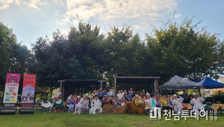 전남투데이 정홍균 기자 | 광주문화재단(대표이사 노희용)이 추진하는 ‘찾아가는문화공연 '당신곁에'’가 지난 10월 4일 광산구 운남근린공원 근처 잔디밭에서 진행됐다. 이날 무대에는 타악그룹 언락(대표 문지훈)이 참여해 흥겨운 전통연희와 사자춤, 줄타기 공연으로 관객들의 뜨거운 호응을 얻었다.