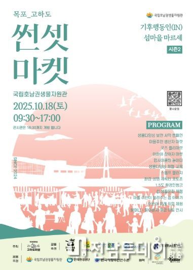 정희록 국립호남권생물자원관 상생협력부장은 “2024년에 이어 올해 두 번째로 열리는 고하도 썬셋 마켓이 섬마을의 복합 문화 행사로 자리매김하기를 기대한다.”라며 “가족이 함께 고하도를 찾아가 가을을 여유롭게 즐기는 소풍이 되길 바란다”라고 말했다.