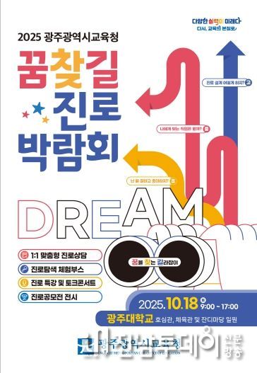 전남투데이 정홍균 기자 | 광주시교육청이 오는 18일 광주대학교 호심관, 체육관, 잔디마당 일원에서 ‘2025 광주 꿈찾길 진로박람회’를 개최한다.