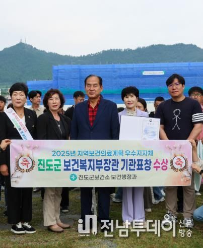 전남투데이 문경식 기자 | 진도군은 보건복지부에서 주관하는 ‘제8기 지역보건의료계획(2023~2026)의 2차 년도 시행 결과 및 3차 년도 시행계획 수립 평가’에서 우수 지자체로 선정돼 보건복지부 장관상(우수 기관 표창)을 받았다고 밝혔다.