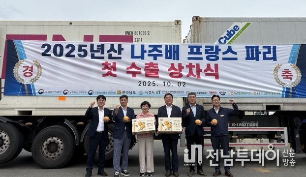 나주시(시장 윤병태)는 최근 장현순 네시피F&B 대표, 이동희 나주배원예농협 조합장, 최명수 전남도의원 등 관계자가 참석한 가운데 나주배 프랑스 첫 수출 상차식을 진행했다고 14일 밝혔다.