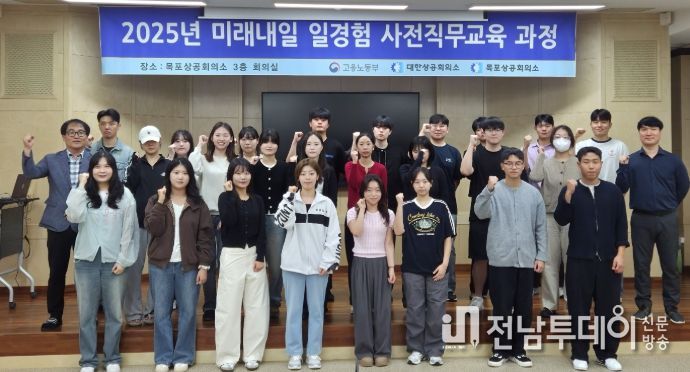 전남투데이 손영욱 기자 | 목포상공회의소는 고용노동부에서 주관하는 “2025년 미래내일 일경험 지원사업 사전직무교육과정” 개강식을 10월 15일 오후 13시 목포상공회의소 3층 대회의실에서 개최했다.