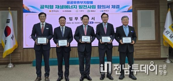 나주시(시장 윤병태)는 15일 전남도청에서 전라남도, 영암군, 영광군, 한전KDN(주)과 함께 ‘공익형 재생에너지 발전사업’ 업무협약을 체결했다고 밝혔다.