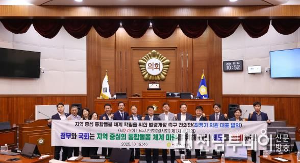 전남투데이 김윤걸 기자 | 나주시의회는 15일 제273회 임시회 제1차 본회의를 열고 ‘지역 중심 통합돌봄 체계 확립을 위한 법령개정 촉구 건의안’을 채택했다.