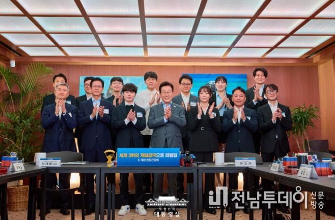 전남투데이 정홍균 기자 | 이재명 대통령은 오늘 게임업체 ‘크래프톤’의 복합 문화 공간인 ‘펍지 성수’를 방문해 ‘세계 3위의 게임강국으로 레벨업’이라는 주제로 현장 간담회를 개최했다.