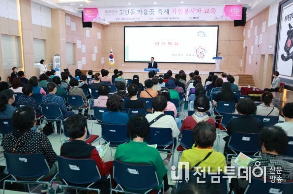 전남투데이 강영선 기자 | 화순군은 지난 14일 ‘2025 화순 고인돌 가을꽃 축제’의 성공 개최를 위하여 자원봉사자 150여 명을 대상으로 군청 대회의실에서 자원봉사자 기본 교육을 진행했다고 밝혔다.