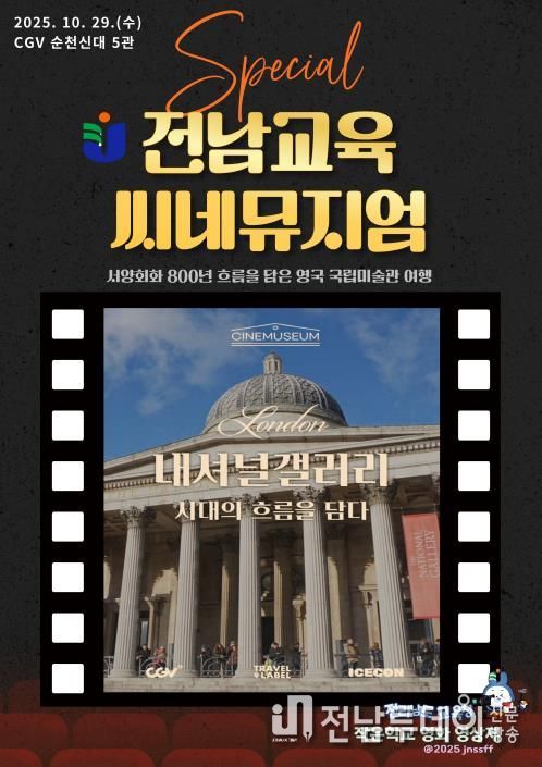 전남투데이 손영욱 기자 | 전라남도교육청은 오는 29일 CGV순천신대 5관에서 ‘전남교육씨네뮤지엄: 아트가이드와 함께하는 유럽 미술관 투어’ 프로그램을 운영한다.