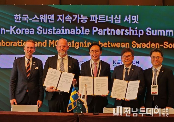 나주시는 16일 서울 그랜드 하얏트 호텔에서 열린 ‘한국-스웨덴 지속 가능 파트너십 서밋’에서 스웨덴 RISE 연구소, 켄텍과 함께 ‘전력반도체 및 에너지 첨단산업 협력체계 구축’을 위한 업무협약을 체결했다고 밝혔다.