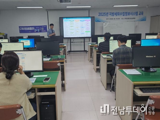 전남투데이 김길룡 기자 | 전남 무안군은 지난 15일 군청 전산교육장에서 부과·징수 담당자 30여 명을 대상으로 ‘2025년 하반기 지방세외수입정보시스템 교육’을 실시했다.