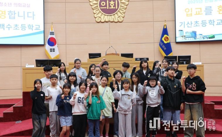 전남투데이 손영욱 기자 | 전라남도의회 오미화 의원(진보당·영광2)이 지난 10월 16일, 전라남도의회 본회의장에서 열린 청소년의회교실에 참석한 백수초(영광)와 기산초(함평) 학생들과 함께 민주주의의 가치와 의회의 역할을 배우는 시간을 가졌다.