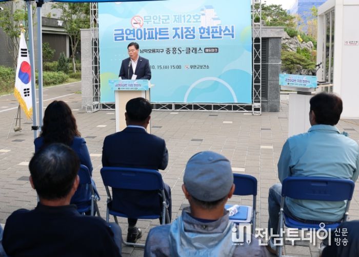 전남투데이 김길룡 기자 | 전남 무안군은 지난 15일 남악오룡지구 중흥 S-클래스 에듀파크 아파트에서 '제12호 금연아파트 지정 현판식'을 개최했다.