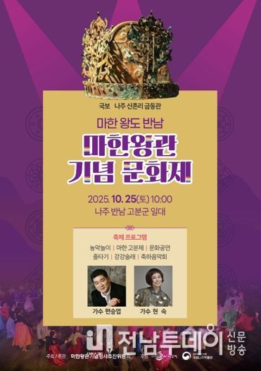 전남투데이 김윤걸 기자 | 전라남도 나주시가 고대 마한의 역사와 문화를 시민과 함께 되새기는 ‘마한왕관 문화행사’를 오는 25일 반남 고분군 일원에서 개최한다.