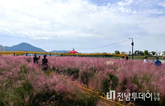 전남투데이 이현승 기자 | 장성군 황룡강 가을꽃축제 이튿날인 19일, 강변 곳곳마다 활짝 핀 가을꽃들이 방문객을 반기고 있다. 특히 용작교, 황룡정원 방면 백일홍과 연꽃정원 코스모스, 문화대교 인근 핑크뮬리가 아름답다.