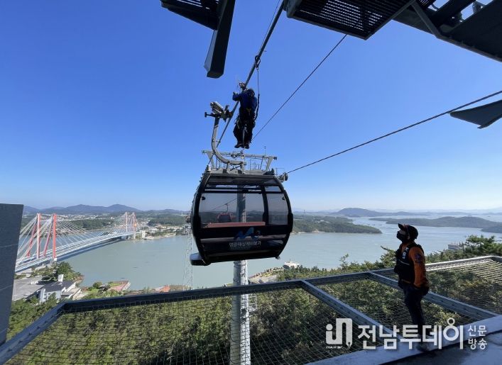 전남투데이 문경식 기자 | 가을여행주간을 맞이하여 전남도로 많은 가족단위 여행객들이 방문이 많아지면서 안전에 대한 관심이 높아지고 있는 가운데 명량해상케이블카는 지난 10월 20일 비상상황 대응 능력을 강화하기 위해 진도소방서와 함께 케이블카 합동 구조훈련을 실시했다.