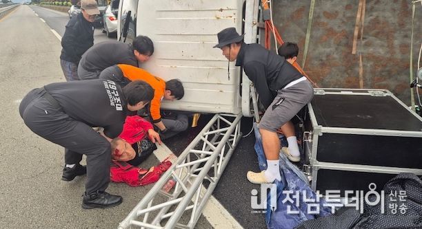 전남투데이 김완규 기자 | 비번 활동중인 소방관들이 도로에서 전복된 포터차량을 발견, 신속한 구조활동으로 시민의 생명을 구해 화제가 되고 있다.