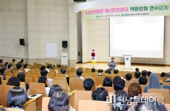 전남투데이 정홍균 기자 | 광주시교육청은 23일 광주시교육청시민협치진흥원 대강당에서 학교장, 교감, 행정실장 등 350여 명을 대상으로 ‘2025학년도 학교안전책임관 재난안전관리 역량강화 연수(2기)’를 실시했다.
