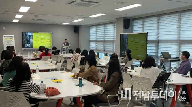 전남투데이 정홍균 기자 | 광주시교육청은 23일 교사성장마루에서 ‘차이나는 교육성장 클라스’ 10월 교육 과정으로 ‘교실을 사로잡는 한 줄의 힘: 카피라이터에게 배우는 컨셉 라이팅’ 프로그램을 운영했다.