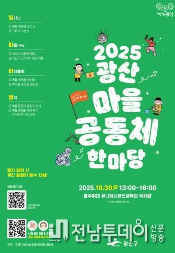 전남투데이 정홍균 기자 | 광주 광산구가 30일 광주여대 유니버시아드체육관 주차장에서 ‘2025년 광산마을공동체한마당’을 개최한다.