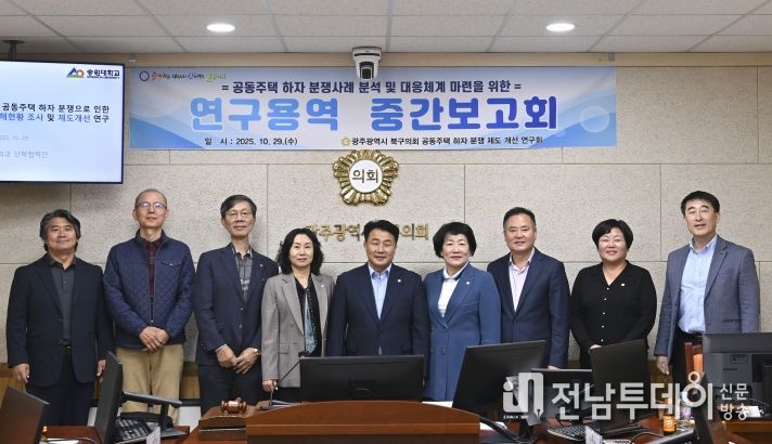 전남투데이 정홍균 기자 | 광주 북구의회 ‘공동주택 하자 분쟁 제도 개선 연구회’(대표의원 기대서)가 지난 29일 연구용역 중간보고회를 개최했다.