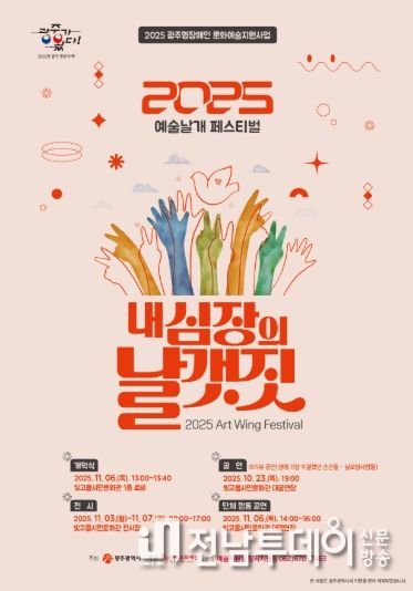 전남투데이 정홍균 기자 | 광주문화재단은 광주형장애인문화예술지원사업의 일환으로 ‘내 심장의 날갯짓’을 주제로 한 ‘2025 예술날개 페스티벌’을 11월 3일부터 7일까지 빛고을시민문화관에서 개최한다.