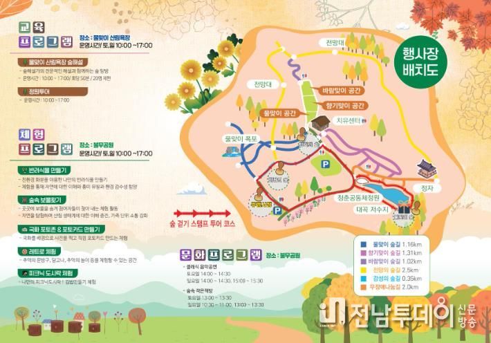 전남투데이 김길룡 기자 | 전남 무안군은 오는 8일부터 9일까지 주말 2일간 무안 물맞이골 산림욕장 및 불무공원 일원에서 ‘물맞이골 숲 걷기 및 체험 행사’를 개최한다.