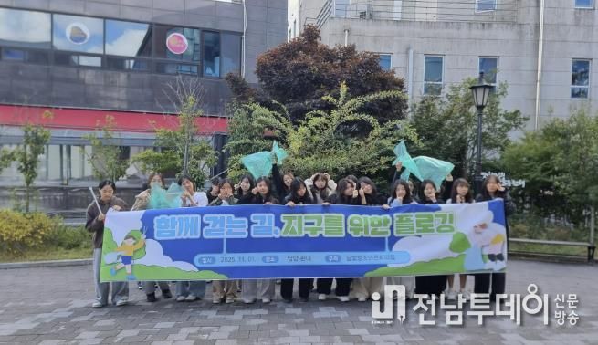 캠페인에서는 담양군 청소년 약 20명이 걷기 운동과 쓰레기 줍기를 결합한 ‘플로깅(Plogging)’ 활동을 진행했다.