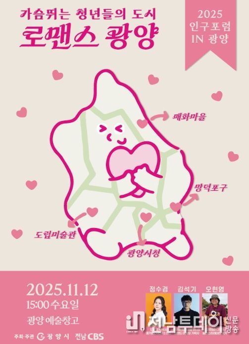 전남투데이 조평훈 기자 | 광양시는 오는 11월 12일 오후 3시, 광양예술창고에서 ‘2025년 인구포럼 in 광양’을 개최한다고 밝혔다.