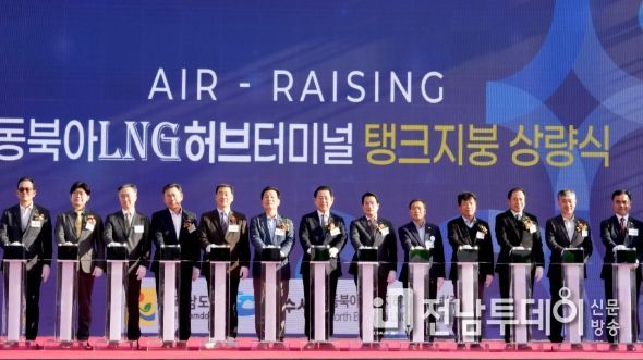 전남투데이 김용희 기자 | 전라남도는 5일 여수 묘도에서 1조 4천억 규모 ‘여수 묘도 LNG허브터미널’ 탱크 지붕 상량식을 개최했다고 밝혔다.