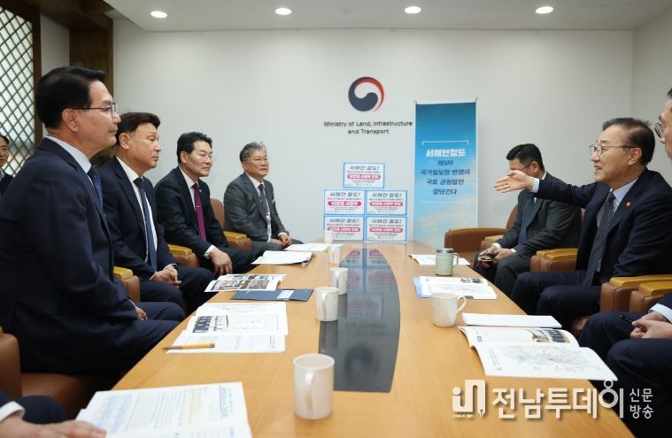 전남투데이 박세훈 기자 | 전남 영광군을 비롯한 전남·북 5개 시·군 단체장은 11월 5일 김윤덕 국토교통부 장관을 만나'서해안철도(새만금∼목포) 건설사업'의 제5차 국가철도망 구축계획 반영을 공동으로 건의했다.